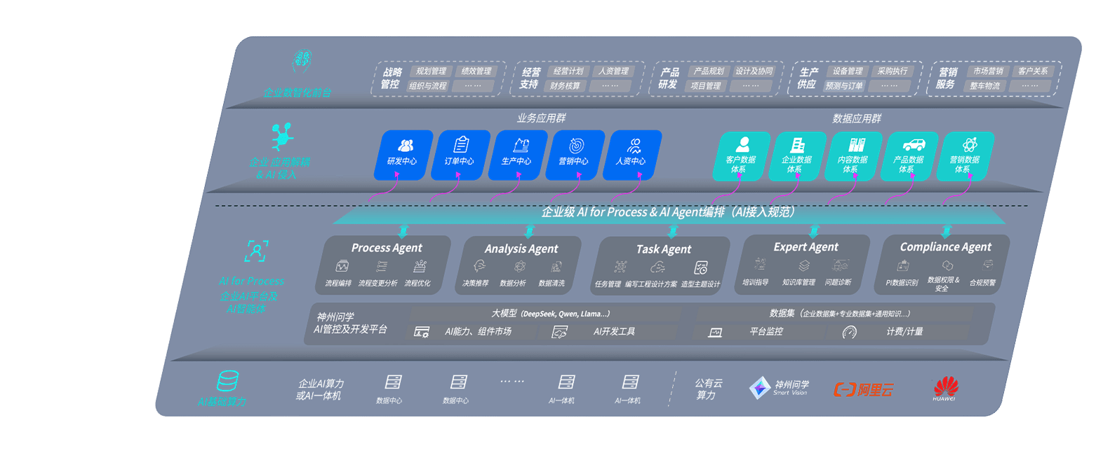 君临国际问学智车解决方案是一套基于AI技术的汽车行业智能化系统,,,覆盖从底层算力到顶层AI应用的全栈方案。。方案由算力层、、、、模型层和应用层组成:算力层,,,方案支持多种一体机配置,,,,具备云端灵活部署、、、、多云适配以及动态优化计算资源的能力;模型层,,君临国际问学平台版提供了企业级AI应用一站式构建与管理平台,,,支持基于后训练强化技术的汽车企业专属模型的训练、、、评测和运营;应用层,,,,君临国际问学DeepSeek版提供包括超级员工、、、智能招采、、、、智能营销、、、、智能客服、、、AI for BI等一系列解决方案,,可助力汽车行业实现数字化转型,,,,让管理更智能、、、响应更敏捷。。。。